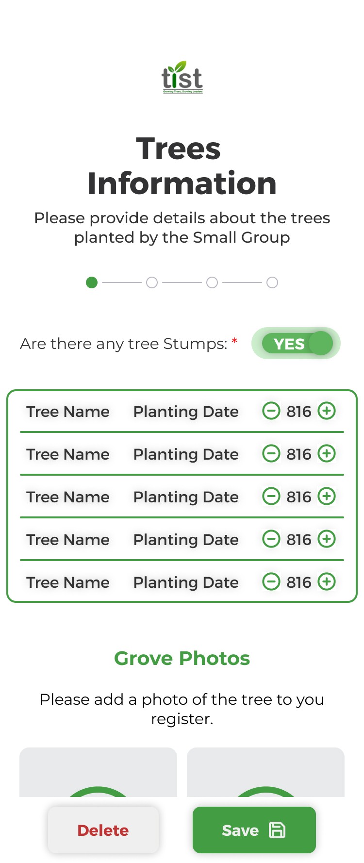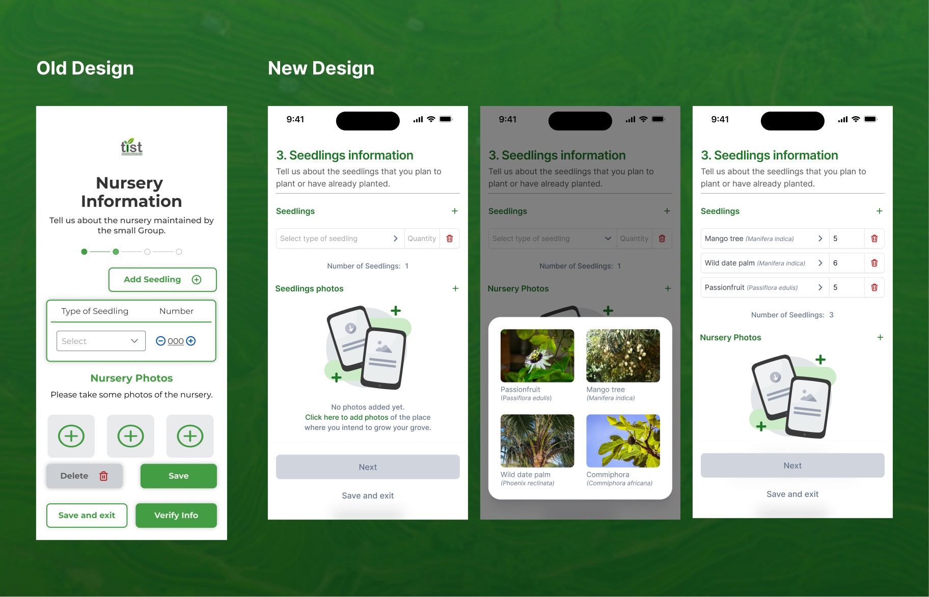 Seedlings, land's details and verification photos.
